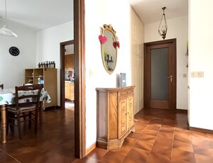 L’abitazione si apre su un ingresso ampio e tradizionale, con armadio a muro, che conduce al soggiorno con balcone. La zona giorno prosegue con la sala da pranzo, un pratico cucinotto e un secondo balcone.